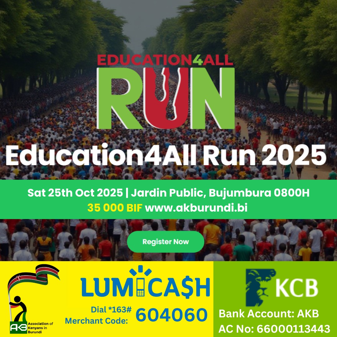 The Association of Kenyans in Burundi (AKB) proudly presents the Educational4All Run, an annual charity marathon dedicated to supporting access to education for underprivileged children.